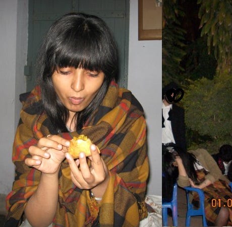 (in my defence, this has precedent back in my late 00s ‘dressing wonky on purpose’ days. My younger self was very fond of a mustard checked shawl that belonged to my best friend; here I am below, wearing it on the left as it was intended to be worn, and on the right, as it wasn’t - as an impromptu dress?skirt? at a New Year’s Eve party in 2008)