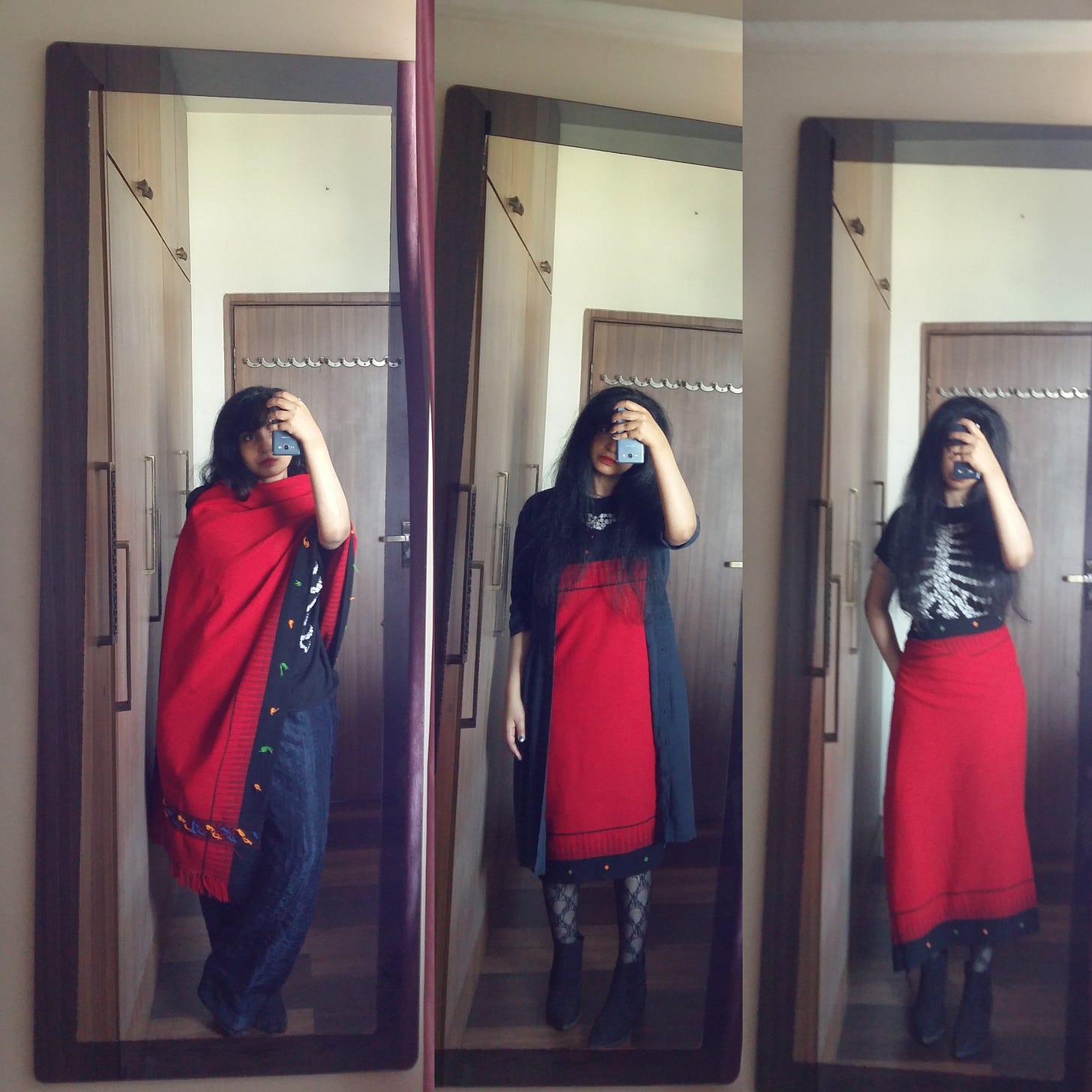 That last was what indirectly resulted in the pics below - my feeling far too lazy to ‘dress’ for Sunday lunch i.e. get into an outfit consisting entirely of clothes which have seams. Liana Satenstein (one of my favourite fashion writers ever) once wrote about the possibilities of a sexy summer shawl; I’m more of a winter-shawl person myself, just for the sheer versatility of them (L-R - worn to lounge around in bed and watch Chungking Express on Christmas; worn to nip down to the neighbours’ for drinks; worn just for shits and giggles to see whether it was viable as a skirt).